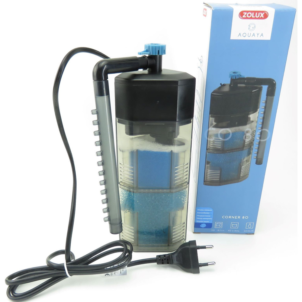 O zolux canto 80 filtro interno é adequado para aquários de 40 a 80 litros.