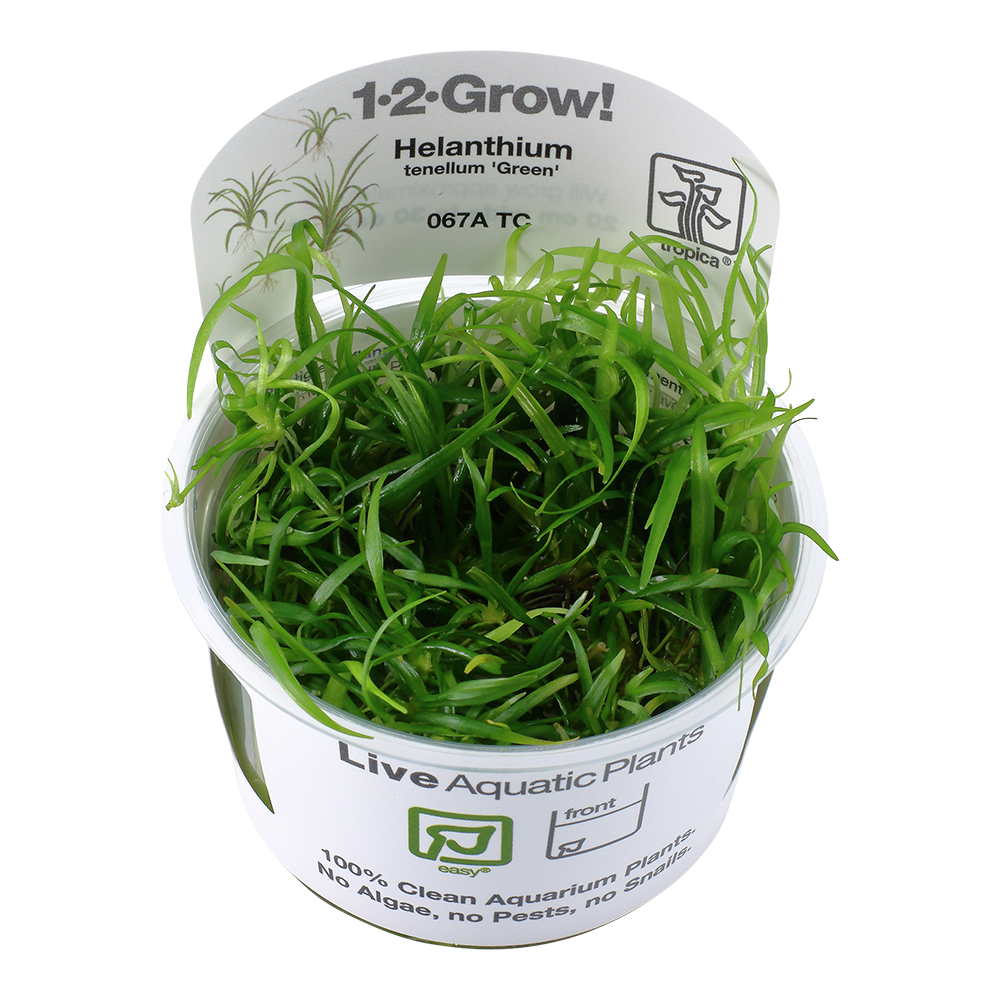 Anteriormente denominado Echinodorus tenellus ‘Verde’. Esta pequena planta rosulada formará facilmente um tapete de 5 a 10 cm de altura quando a luz for boa e a camada inferior nutritiva. Mesmo com um nível de luz intenso, esta variedade permanece verde fresca, ao contrário do habitual Helanthium tenellum, mais avermelhado. Uma planta de primeiro plano fácil e pouco exigente.