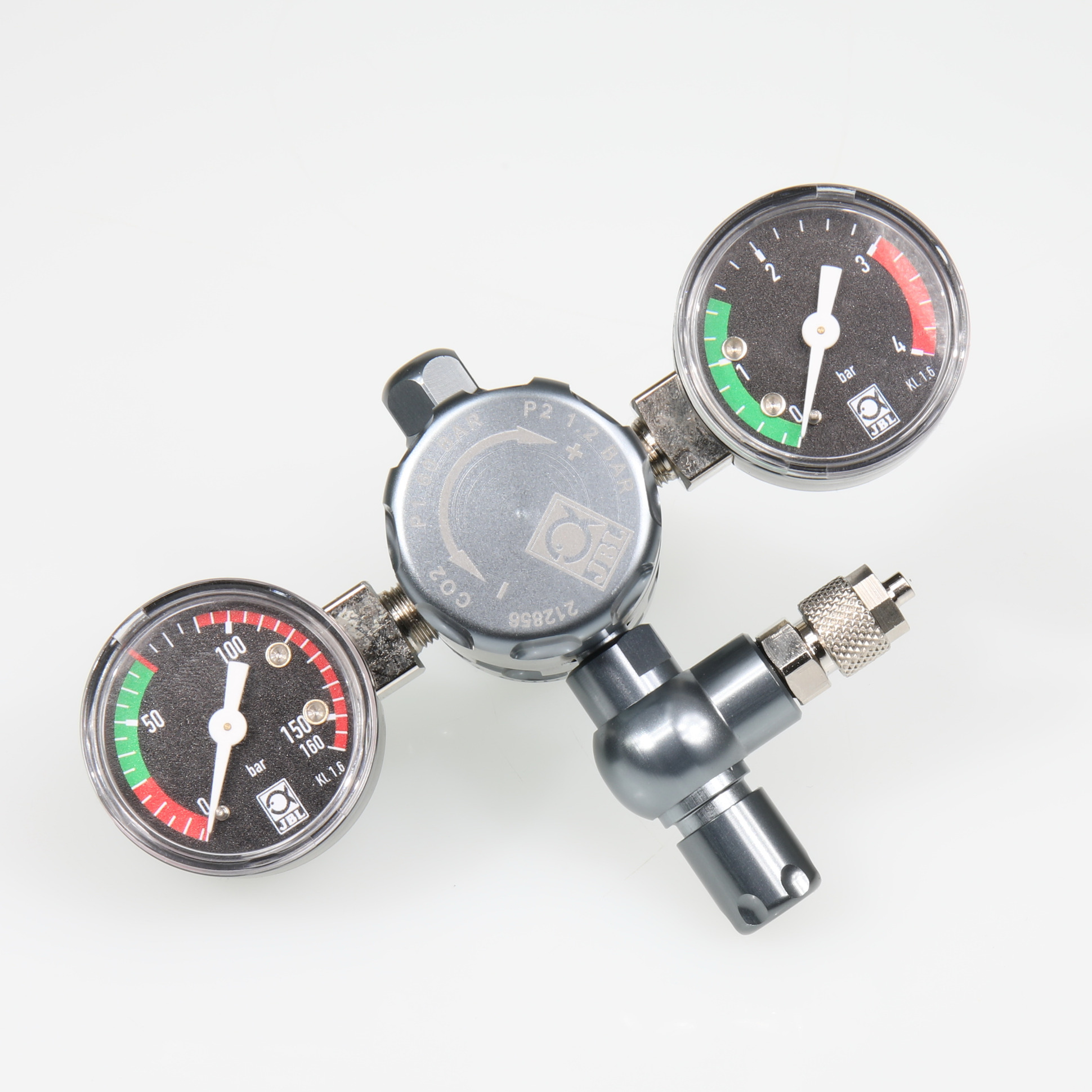 - Conteúdo da embalagem: 1 redutor de pressão de CO2 com 2 manômetros (para trabalho e pressão do cilindro) para cilindros recarregáveis, com adaptador desenroscável – então adequado para cilindros de CO2 descartáveis