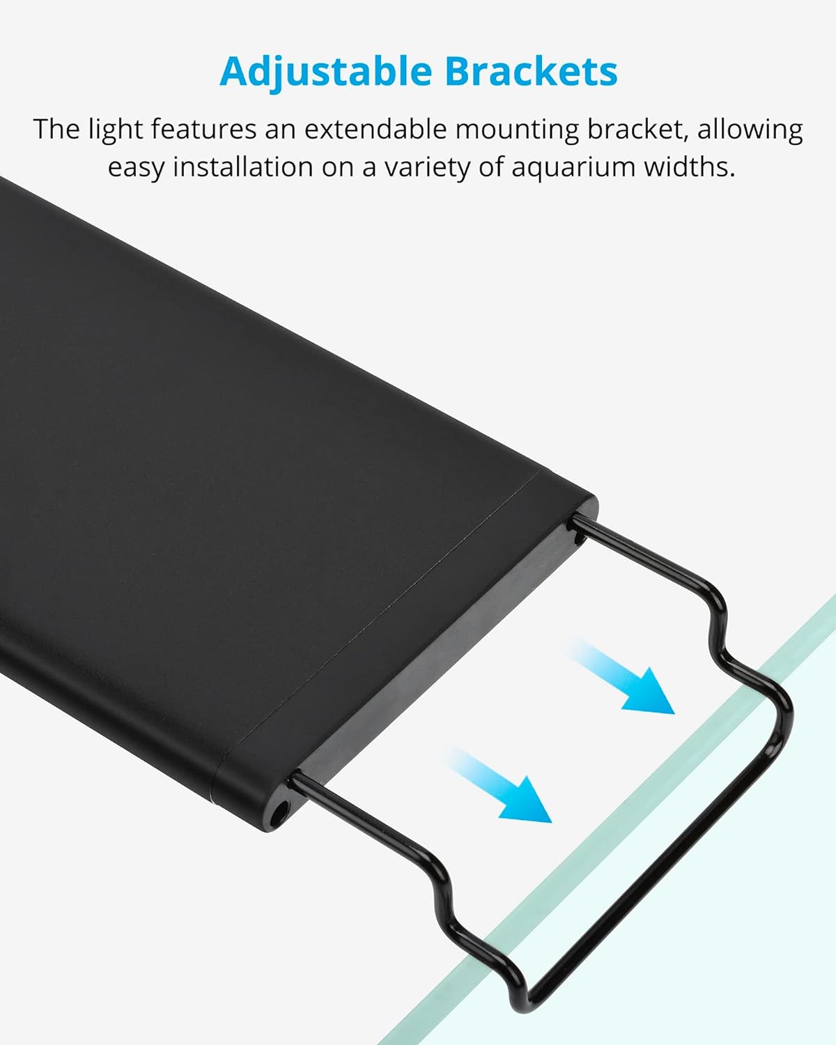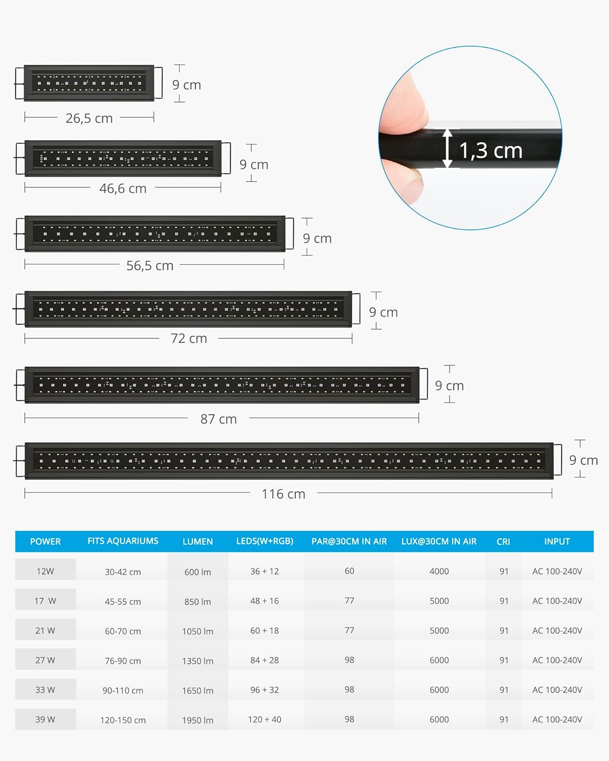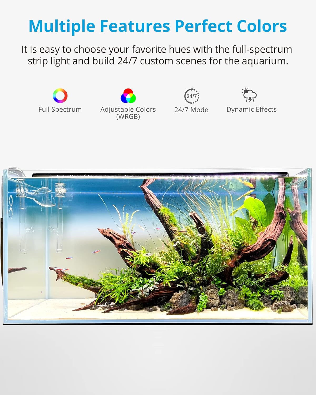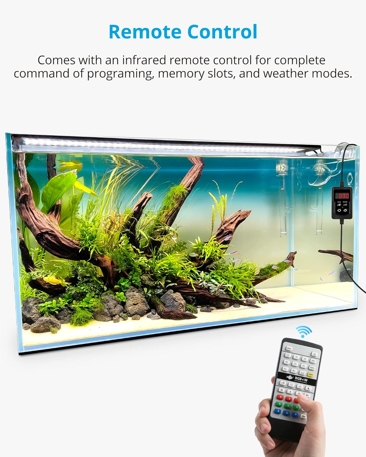 - RGB+W 24/7 pode proporcionar uma melhoria de cor brilhante enquanto produz crescimento de plantas, a luz brilhante com RGB e LEDs brancos de 6500 K são ideais para paisagens aquáticas de aquários de água doce