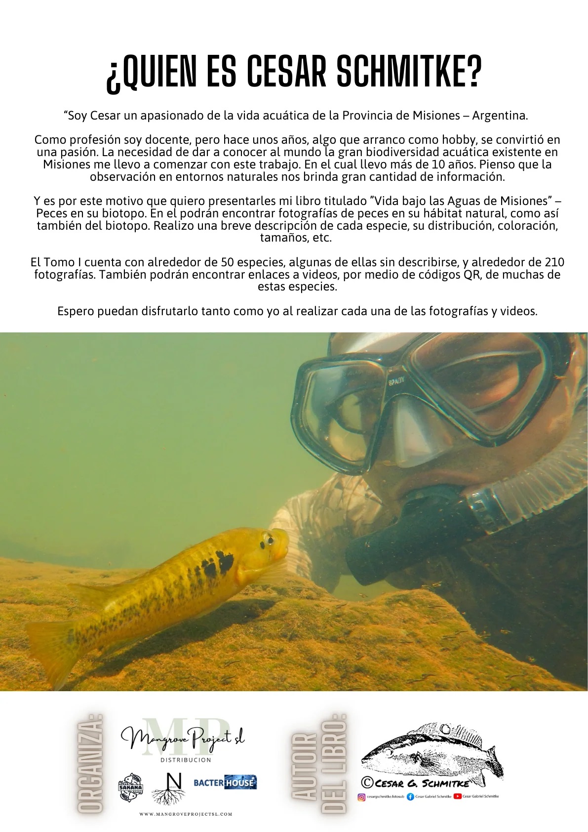 Este livro escrito por César Schmitke, apaixonado pela biodiversidade aquática da província de Misiones (Argentina), que tem mais de 10 anos de experiência documentando espécies em seu ambiente natural, oferece ao leitor uma experiência visualmente marcante da vida debaixo d’água.