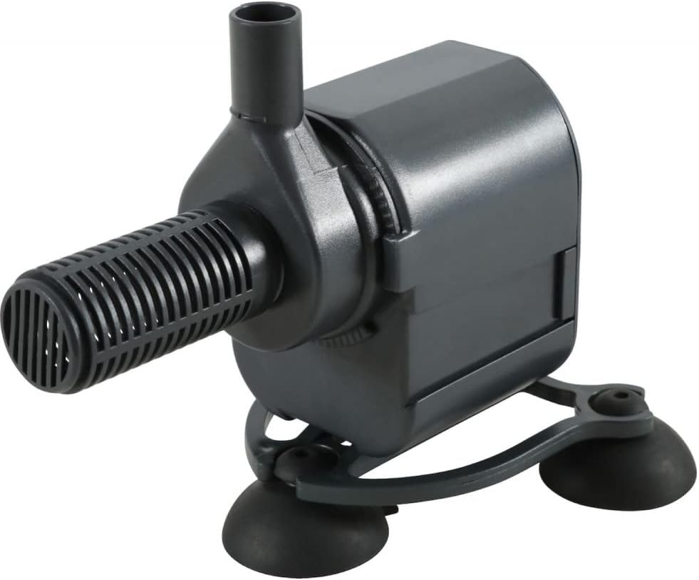 • Mini bomba interior para aquário de 160 litros até 250 litros. Caudal de 1000 litros/hora. Altura máxima de expulsão: 1,50 m. Cabo elétrico de 2 metros. Adequado para tubos de 12/16 mm de diâmetro. Diâmetro de entrada para uso fora do aquário 16/22. rotativo de 360 graus para se ajustar à sua instalação. Grade pré-filtro incluída para instalação de uma esponja de filtragem (não incluída). Base adaptável com ventosas incluídas. Potência: 13 W. Tamanho: comprimento 8,9 x