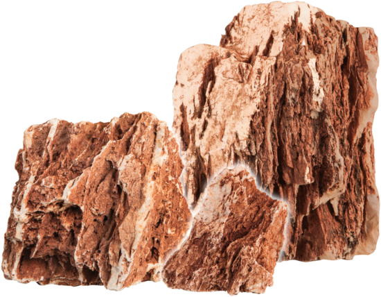 Pedra natural em vermelho e castanho com superfície fortemente fissurada